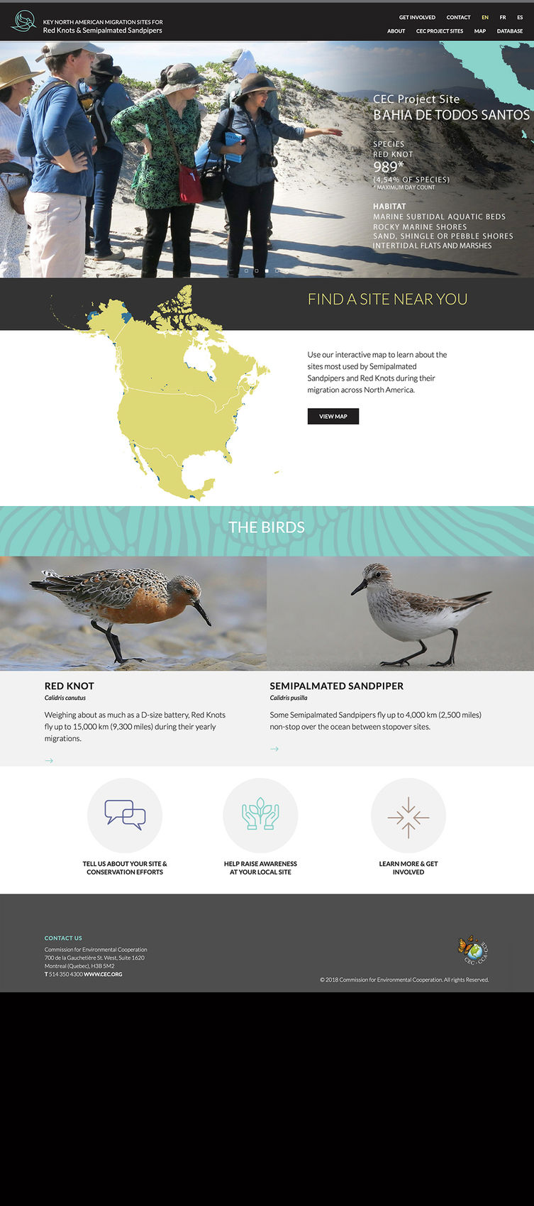Canada, Mexico and the United States, through the Commission for Environmental Cooperation (CEC), approved a trinational project to improve conservation outcomes for at-risk shorebirds. Through a newly designed website, the goal was to foster North American conservation opportunities for Semipalmated Sandpipers and Red Knots by informing, engaging and connecting communities at key sites for these two species.